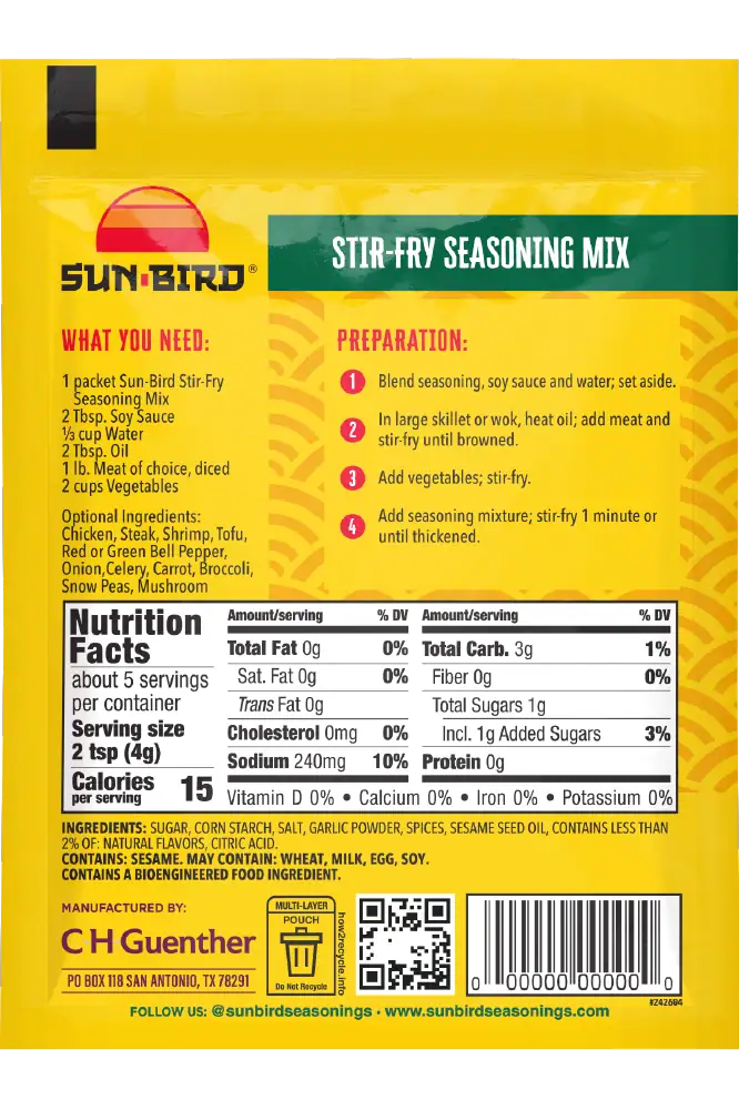 • 1 packet Sun-Bird® Stir-Fry Seasoning Mix